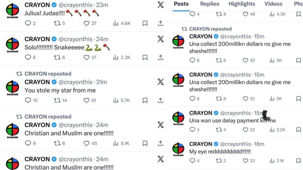 In the posts, Crayon claimed that Mavin Records had “stolen his star,” hinting that despite his growing fame under the label, he had not received the recognition or support he expected.
